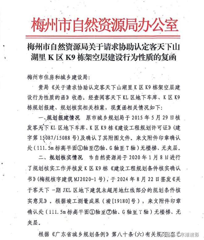 二审中,梅州市住建局居然拿出一份梅州市规自局给其的复函,复函称,“客天下K9栋无楼梯、无夹层,因此,在建设项目规划核实后所建的建构筑物都属于违法建筑。”