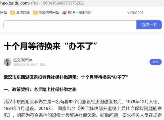 武汉市东西湖区退役老兵社保补缴遇阻:十个月等待换来“办不了”