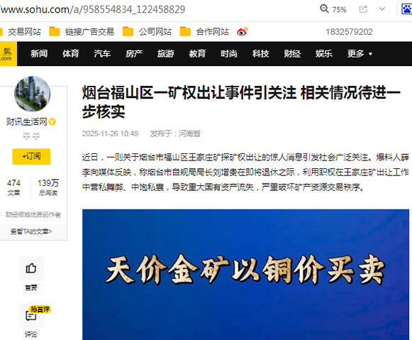 近日,一则关于烟台市福山区王家庄矿探矿权出让的惊人消息引发社会广泛关注。爆料人薛李向媒体反映,称烟台市自规局领导刘某在即将退休之际,利用职权在王家庄矿出让工作中营私舞弊、中饱私囊,导致重大国有资产流失,严重破坏矿产资源交易秩序。