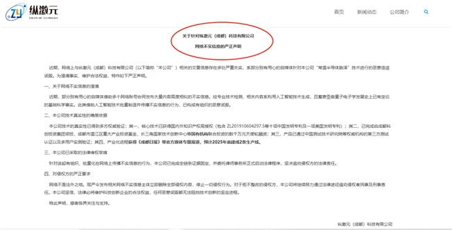 纵激元(成都)科技有限公司近日发布《严正声明》,回应外界对其“常温半导体脉泽”技术的质疑。声明中,该公司试图以专利授权、融资进展、第三方测试和媒体报道作为技术真实性的依据。然而,科学问题终究需要科学回答,再多的外部包装也无法绕过最基本的物理定律。我们在此针对声明中的核心论点逐一剖析。