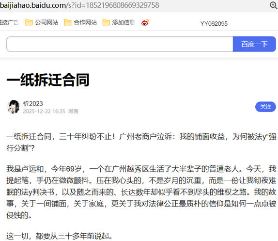 我是卢远和,今年69岁,一个在广州越秀区生活了大半辈子的普通老人。今天,我提起笔,手仍在微微颤抖。压在我心头的,不是岁月的沉重,而是一份让我彻夜难眠的法y判决书,以及随之而来的、长达数年却似乎看不到尽头的维权之路。我的故事,关于一间铺面,关于家庭,更关于我对法律公正最质朴的信仰是如何一点点被侵蚀的。