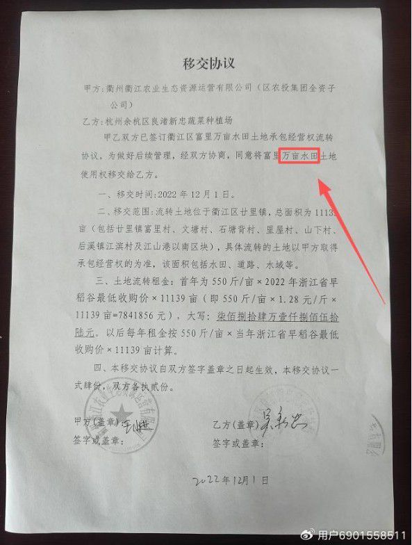 移交协议显示:万亩水田实则(山改地)