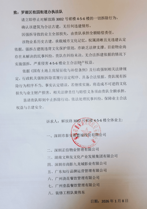一边是执法队"程序完备、依法强拆"的官方回应,一边是业主"越权执法、财产遭劫"的泣血控诉。深圳市罗湖区解放路3002号4-5-6楼的强拆事件,在桂园街道综合行政执法队给出书面答复后,非但未平息争议,反而因双方的巨大分歧,暴露出执法权限、程序合规性等多重疑点,成为拷问法治公正的焦点事件。